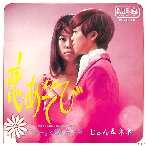 ※以降「じゅん&ネネ」名義。「人の世のさまざまな愛の形を歌うために、愛の妖精“じゅん&ネネ”がデビューしました。サイケなゴー・ゴーやR&Bを上手に踊るふたり。木陰で小鳥の歌に耳をかたむけるふたり。でも歌うことが何よりも好きな可愛いふたりは、あなたの愛の妖精です。」オリコン最高位13位。愛するってこわい 山口あかり/平尾昌晃/小谷充