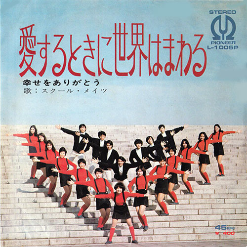 ※「万国博でその若々しさと躍動美が大きな評判をよんだスクール・メイツの71年レコーディング第一弾!!バイタリティーとリズミックなロックアレンジがすばらしい迫力です。」愛するときに世界はまわる 山上路夫/森本太郎/森岡賢一郎