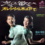 ※「吉永小百合、スクール・メイツ」名義。演奏は津々美洋とオールスターズ・ワゴン。「オレンジの木の下で」は唄:吉永小百合。2つ折り見開きジャケット。恋の歓び 佐伯孝夫/鈴木邦彦/鈴木邦彦